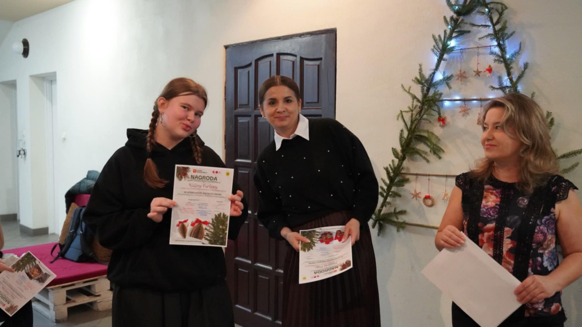W dniu 12.12.2025 w Gminnym Ośrodku Kultury odbyło się wręczenie nagród w konkursie świątecznym "NAJPIĘKNIEJSZA OZDOBA BOŻONARODENIOWA". Wśród nagrodzonych znaleźli się nasi uczniowie: Karolina Biernacka z klasy 5, Paulina Pelc z klasy 6, Wiktor Baran z klasy 7, Seweryn Jarosz z klasy 7 oraz Kalina Furlepa z klasy 8.